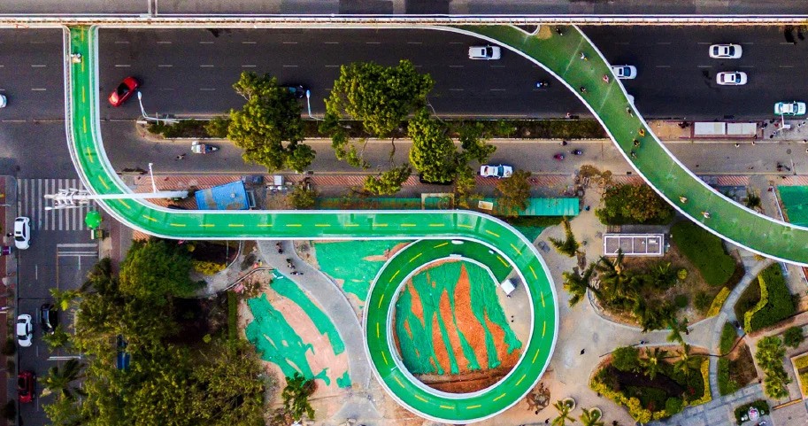Record : Il s’agit de la plus longue piste cyclable aérienne du monde.