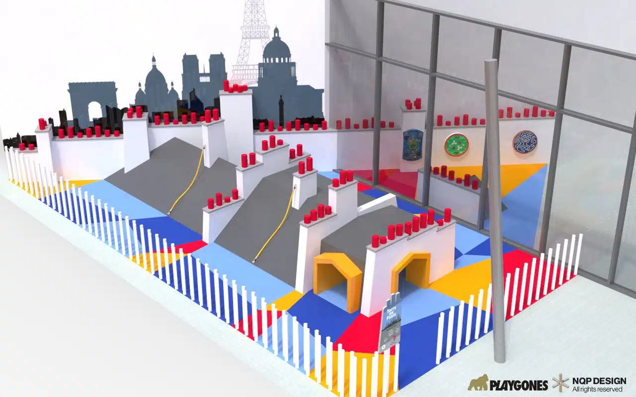 Découvrez notre magnifique aire de jeux sur-mesure inspirée du parkour et des toits Parisiens