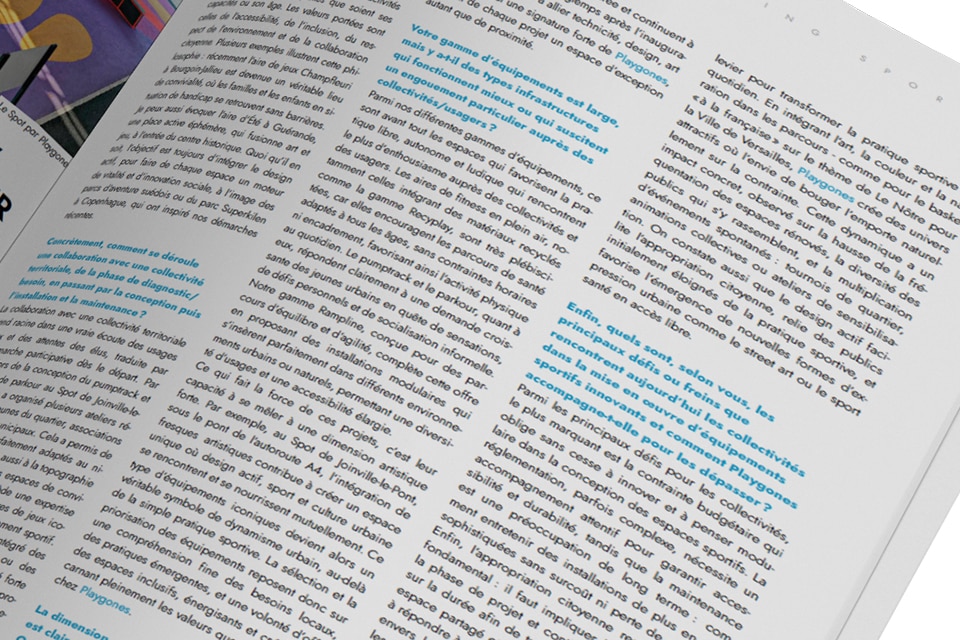À l’origine, l’objectif était clair : rendre la pratique sportive plus accessible grâce à des équipements innovants destinés aux collectivités. Progressivement, la mission s’est élargie. Il ne s’agissait plus seulement d’installer des infrastructures, mais de favoriser l’inclusion sociale, d’intégrer le jeu dans l’espace urbain et de développer des solutions participatives, créatives et durables.