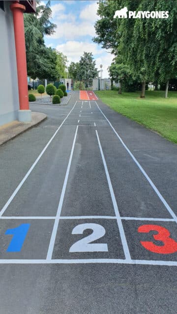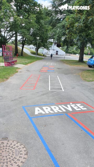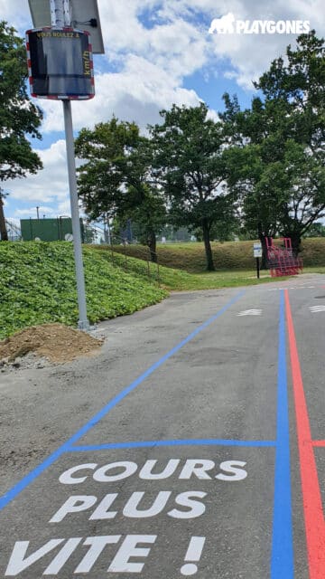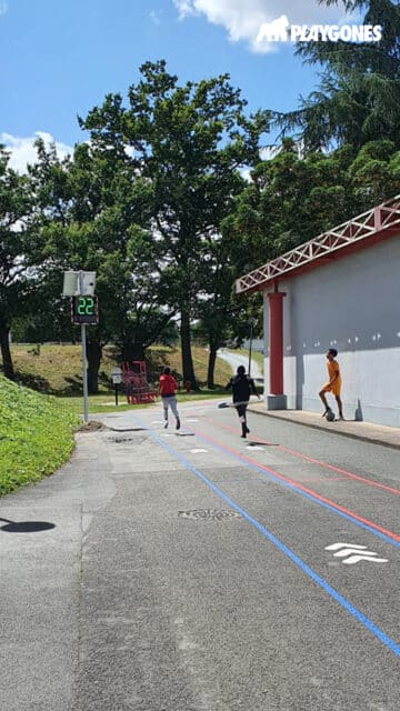 Une piste de course à trois couloirs, ainsi qu’un double couloir de course avec un radar de vitesse solaire à l’arrivée, incite les enfants et les adolescents à se dépasser et à se challenger. De plus, un espace de saut en longueur permet de tester ses capacités en détente sèche ou en courant, tandis que des échelles de rythme dessinées au sol offrent des exercices de rapidité et de coordination.