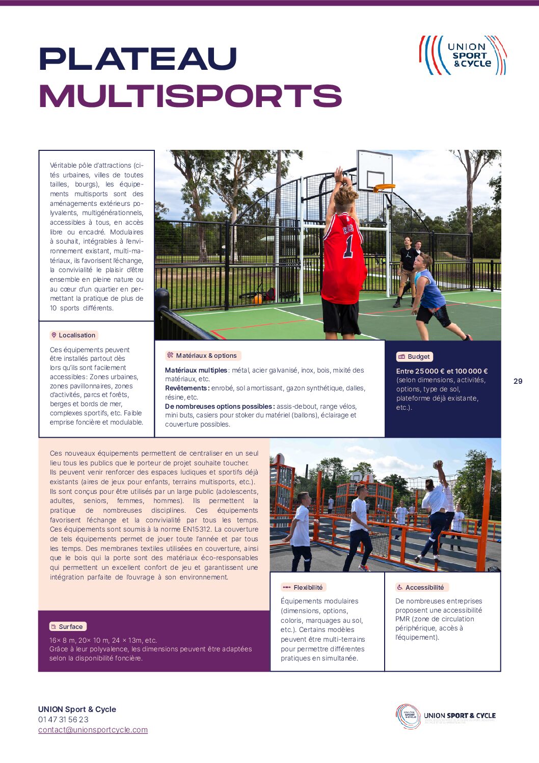 Conseils d’implantation, budgets moyens, surfaces et caractéristiques techniques, ou encore possibilité d’accompagnement et contacts directs au sein des fédérations sont autant de recommandations que vous pourrez retrouver dans ces fiches pratiques.