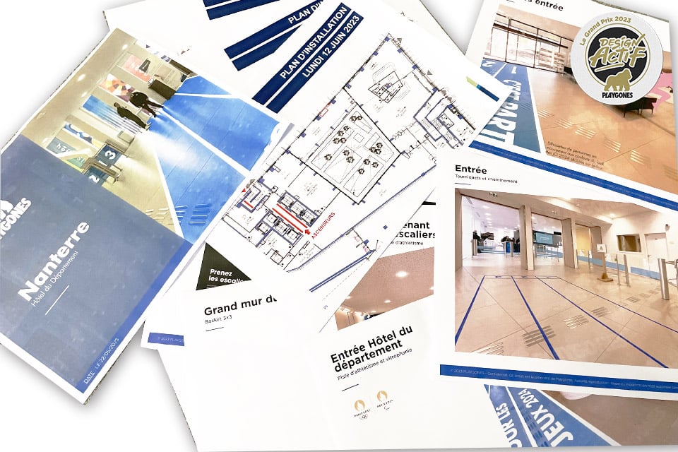 Le CD92 aux couleurs de Terre de Jeux : Le Nudge, un outil du Design actif Habillage sur le thème du Design actif de l’Hôtel du Département des Hauts de Seine à Nanterre (92) par Playgones.