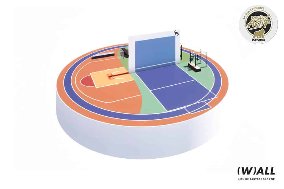 Le (W)ALL est le seul équipement sportif urbain qui s’articule autour d’un mur. Sa configuration en fait un véritable gymnase à ciel ouvert. Il favorise la coactivité, la convivialité et le partage, renforçant ainsi l’attractivité du sport et créant un nouveau lien social. Il mise sur l’innovation en intégrant une conception carbo-neutre et bio-climatique, visant à promouvoir une pratique sportive responsable.