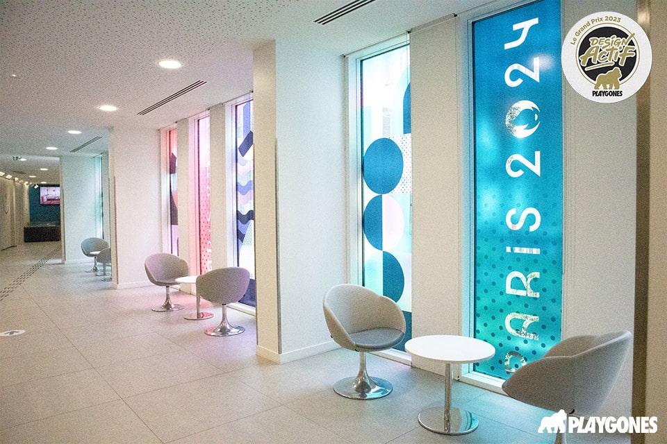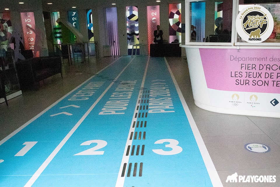 Le CD92 aux couleurs de Terre de Jeux : Le Nudge, un outil du Design actif Habillage sur le thème du Design actif de l’Hôtel du Département des Hauts de Seine à Nanterre (92) par Playgones.