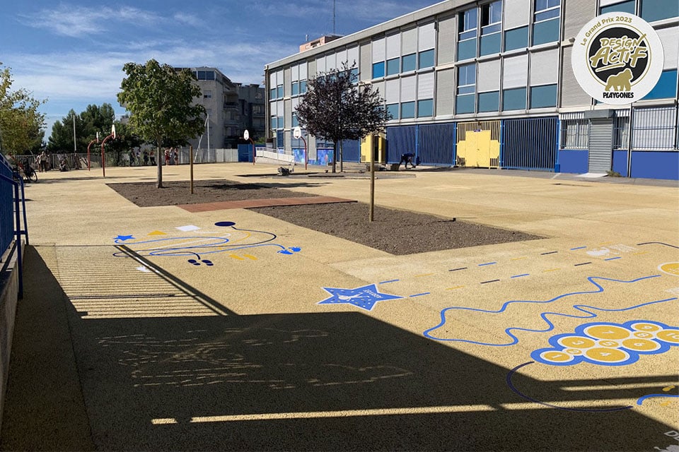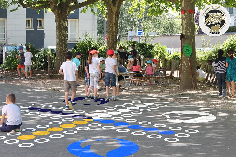 Paris 2024, avec l’expertise de Playgones, propose un catalogue dédié à l’aménagement des cours d’écoles pour encourager l’activité physique et sportive de tous les élèves et l’utilisation égalitaire de l’espace. Des peintures et des thermocollages design pour bouger plus