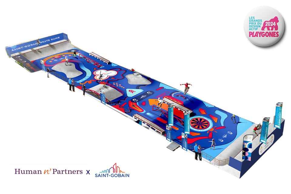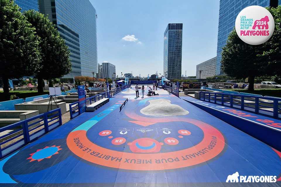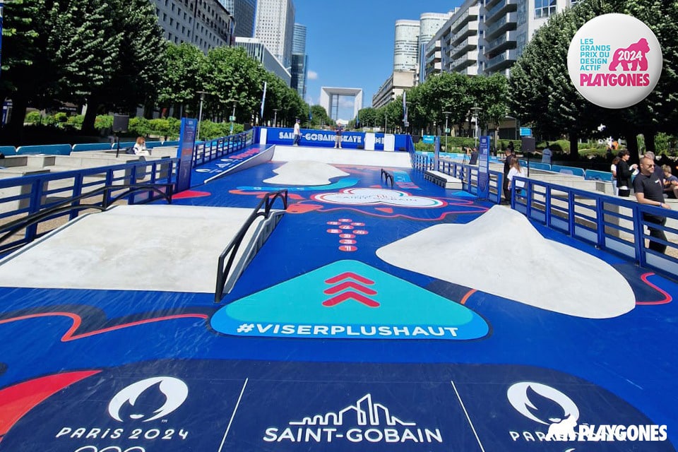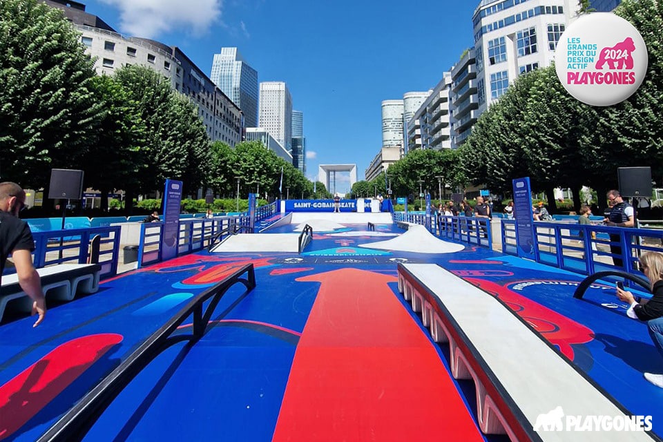 La création du Saint-Gobain Skate Game sur l’esplanade de La Défense pour les Jeux de Paris 2024 est une premère mondiale. Ce skatepark de 400 m² incarne parfaitement l’esprit du designactif en alliant innovation, accessibilité et durabilité. Saint-Gobain a réussi à créer un espace à la fois fonctionnel et esthétiquement plaisant