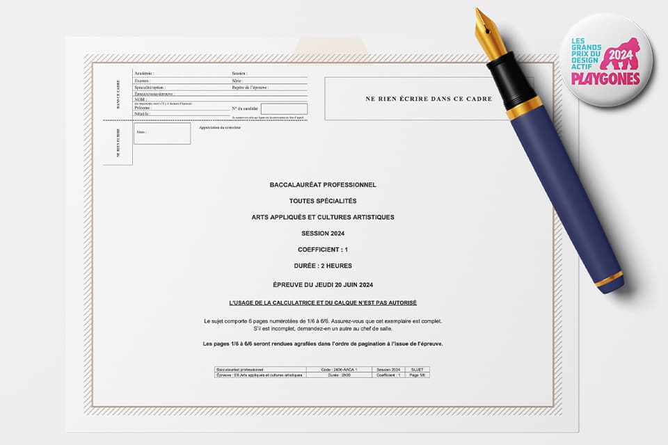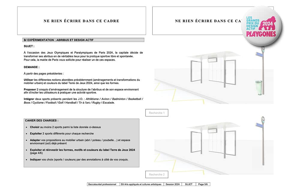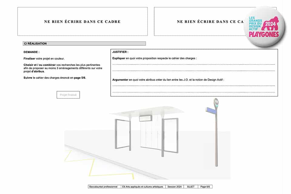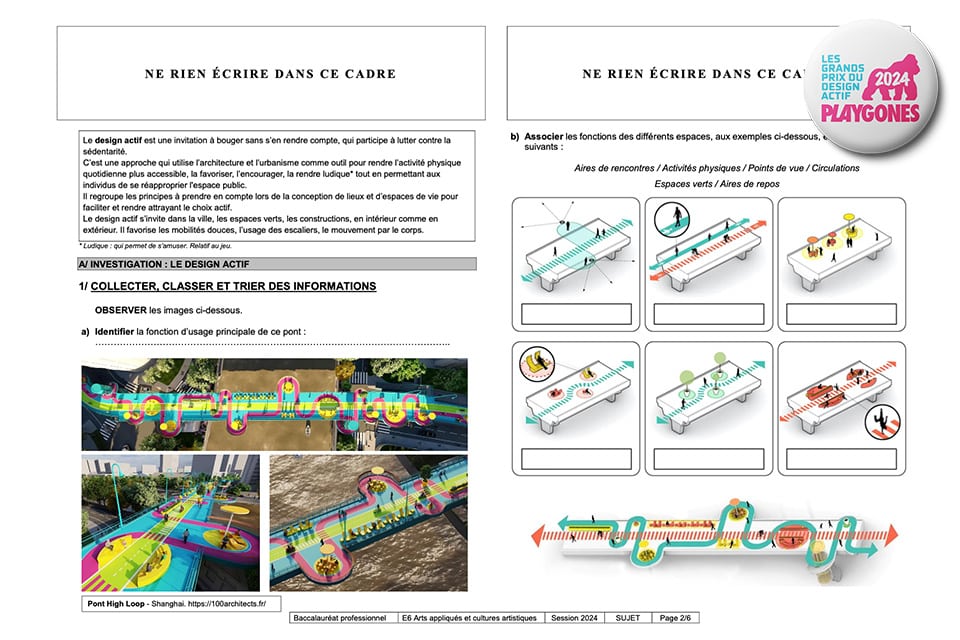 C’est avec une infinie surprise que nous avons découvert que le Design Actif était un sujet du Bac pro 2024, que notre définition du concept était reprise intégralement en introduction et que différentes images et réalisations avec 100Architects ponctuaient le sujet.