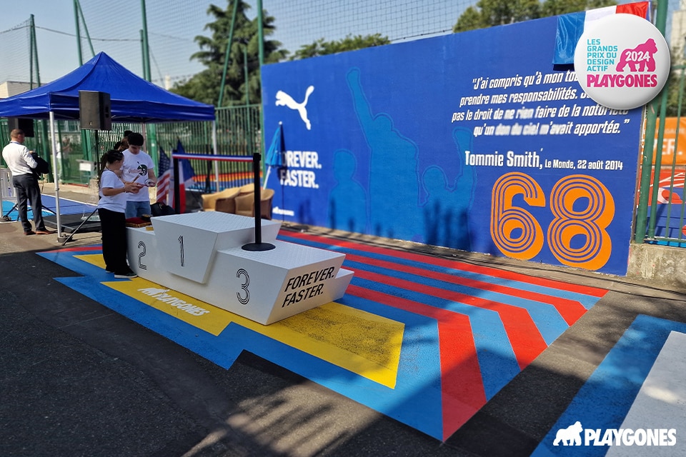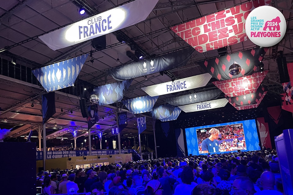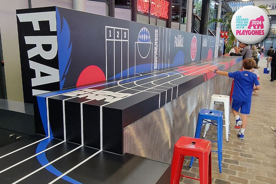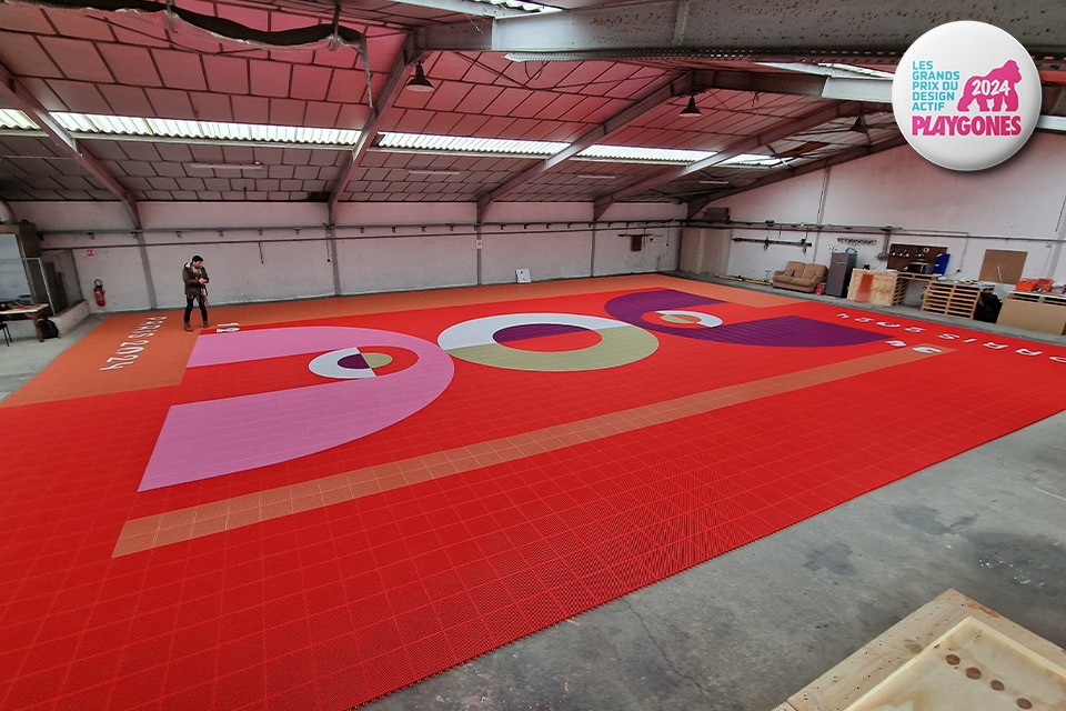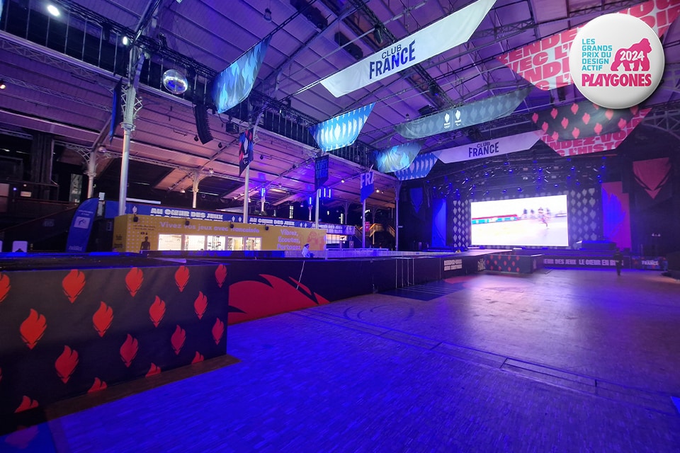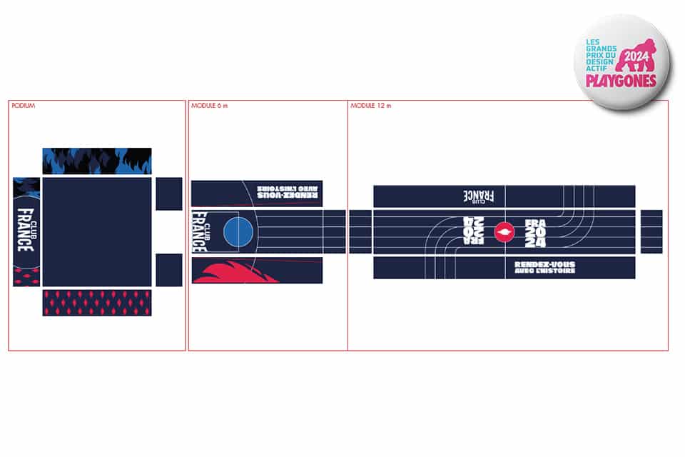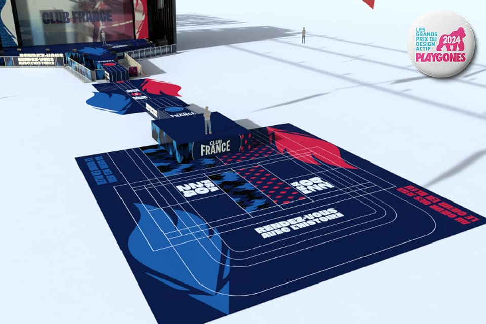 Avec Playgones, nous avons contribué à faire vibrer chaque ville-étape de la flamme olympique en réalisant le revêtement du Chaudron. Grâce à des dalles clipsables personnalisées, nous avons créé des graphismes uniques en accord avec la charte graphique de Paris 2024. Le terrain ainsi formé a été le théâtre des démonstrations spectaculaires de breakdance, BMX, et bien d’autres disciplines. Notre collaboration s’est aussi étendue au Club France, où nous avons conçu et dessiné la scénographie complète : Habillage de la nef, Podium des athlètes, Bars emblématiques du Club France, le tout en harmonie avec leur identité visuelle. [Lire la suite …]