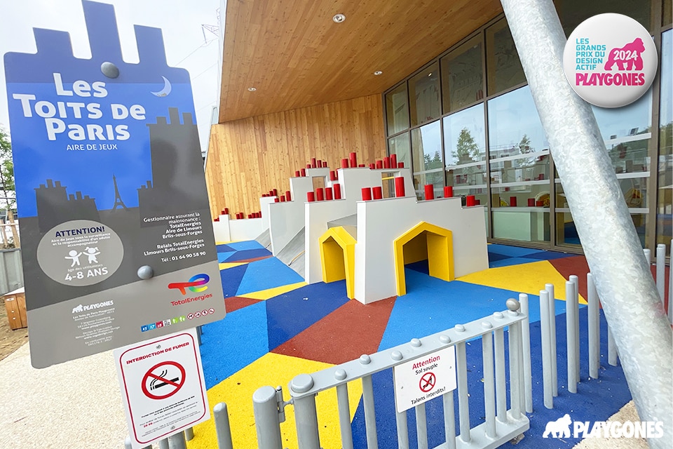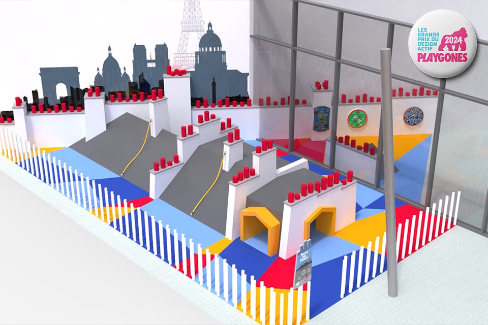 Découvrez notre magnifique aire de jeux sur-mesure inspirée du parkour et des toits Parisiens