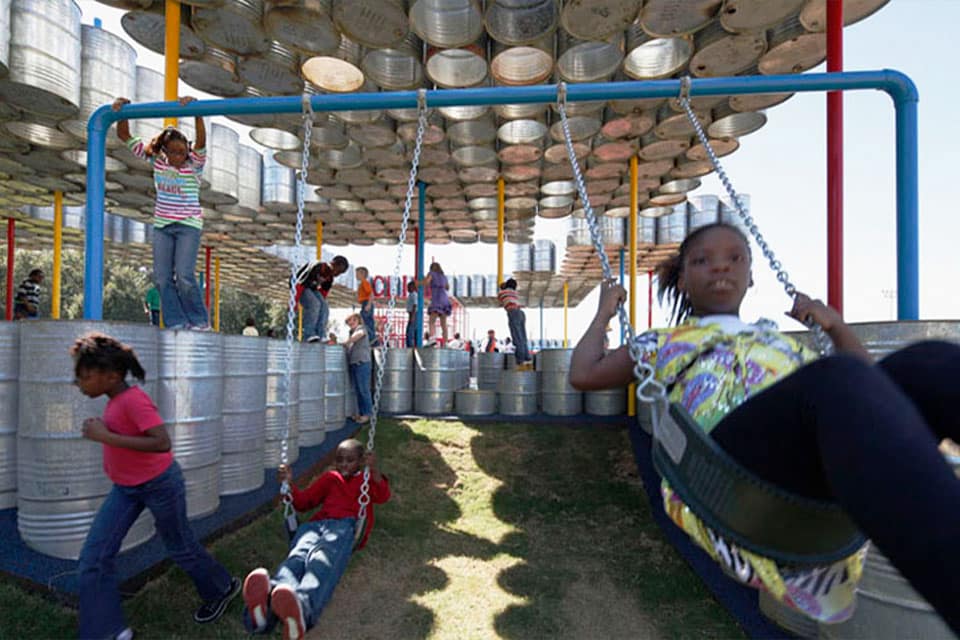 Lions Park : l’aire de jeux aux 2000 barils d’acier recyclés