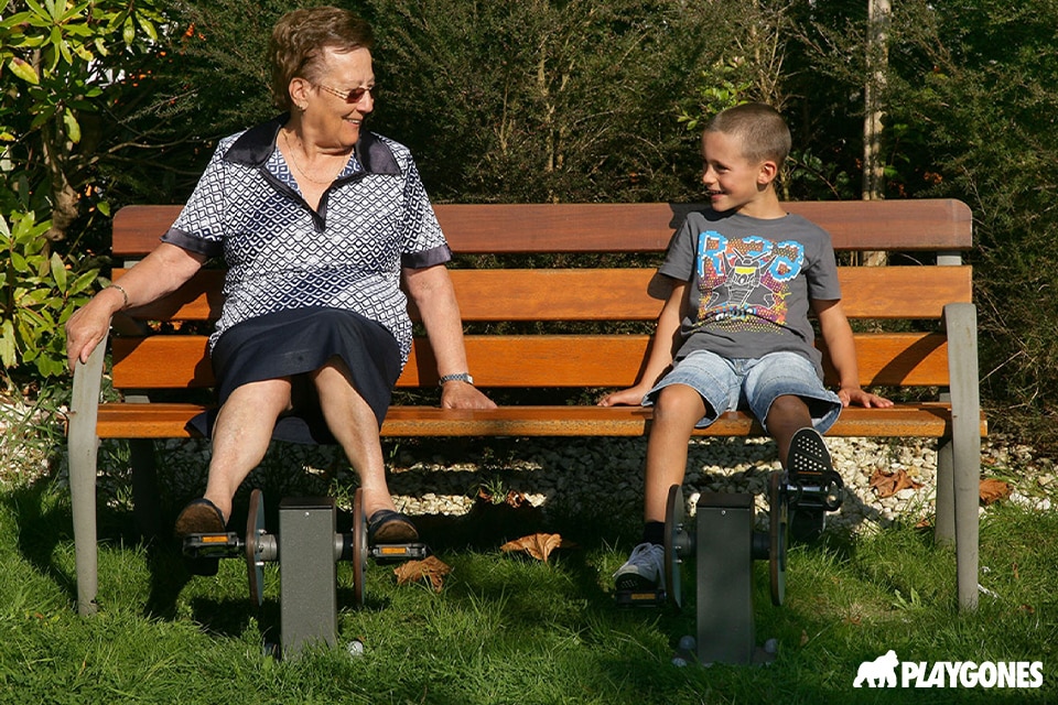 Playgones propose des parcours de motricité douce, des agrès ergonomiques pour seniors, des bancs actifs, des marquages sensoriels et des espaces intergénérationnels.