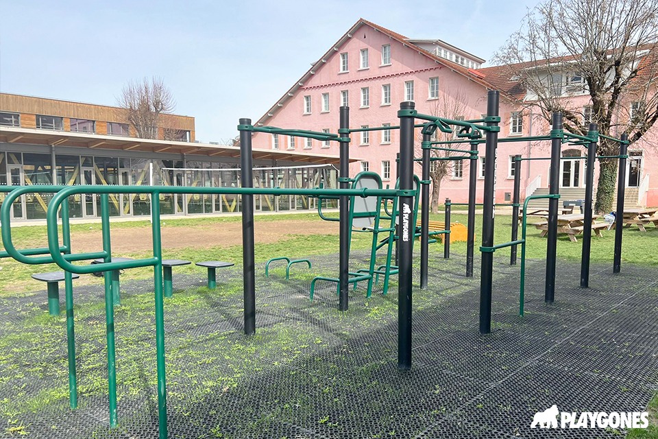 Playgones conçoit des espaces modulables pour les campus : mobilier urbain ludique, zones d’entraînement sportif( fitness plein air,..) , scènes d’expression libre, ou zones calmes végétalisées.