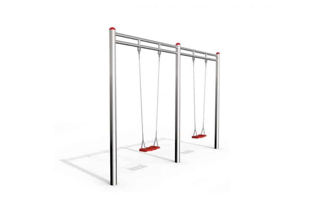 Patis 2 offre deux fois plus de plaisir. Avec sa construction stable et durable en acier inoxydable et son design élégant, il est parfait pour toutes les aires de jeux et attire comme par magie les enfants de tous âges. Les sièges sont en caoutchouc et sont disponibles en différentes couleurs. Le top des combinaison : une balançoire avec un siège pour bébé et l’autre avec un siège normal.