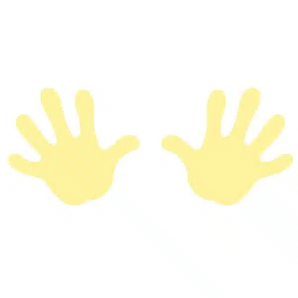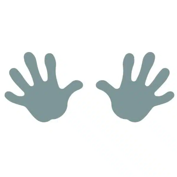 Des empreintes de mains colorées pour des jeux de contact, de coordination ou de repérage.