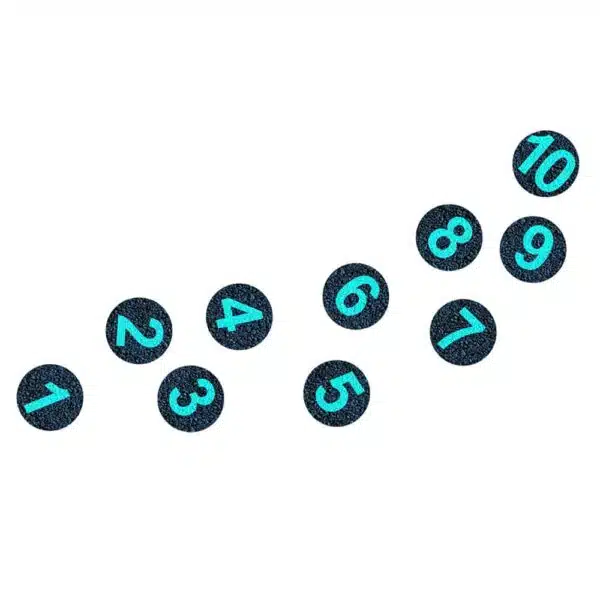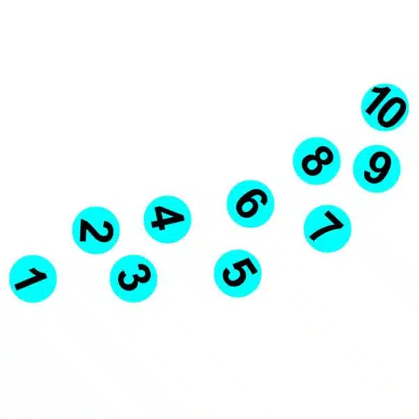 Des bulles rondes contenant les chiffres 1 à 10 pour inventer des parcours aléatoires ou codés.