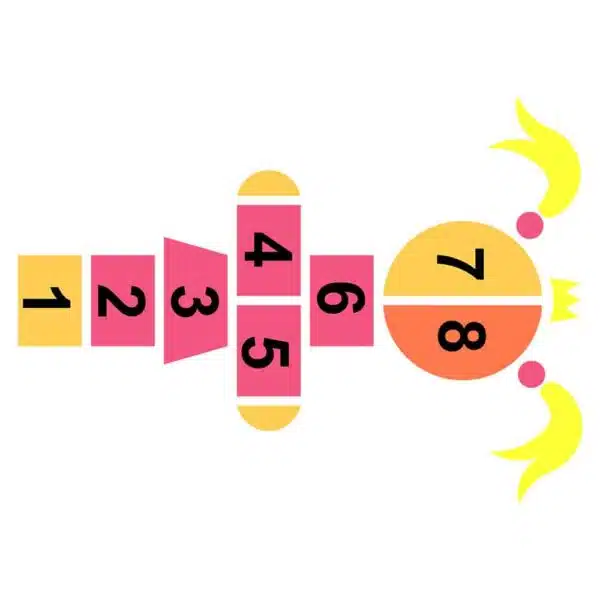 Le jeu au sol « Marelle princesse » invite les enfants à explorer, sauter ou réfléchir en s’amusant.