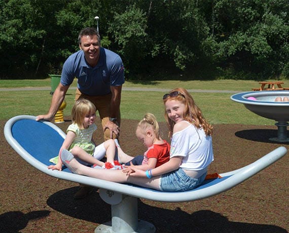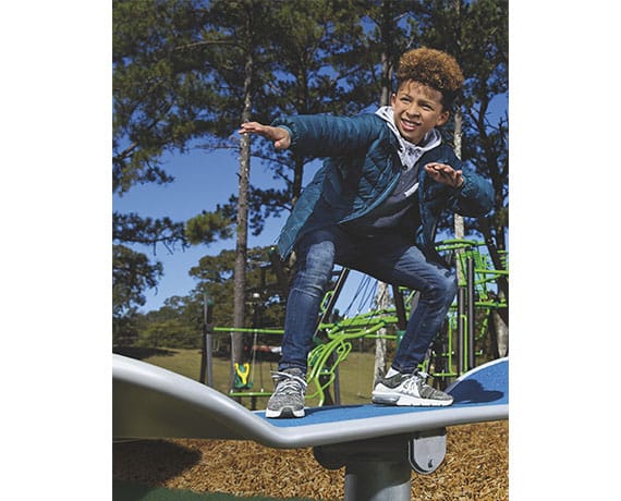 Le jeu Butterfly propose une grande plateforme accessible à la hauteur de transfert d’un fauteuil roulant.