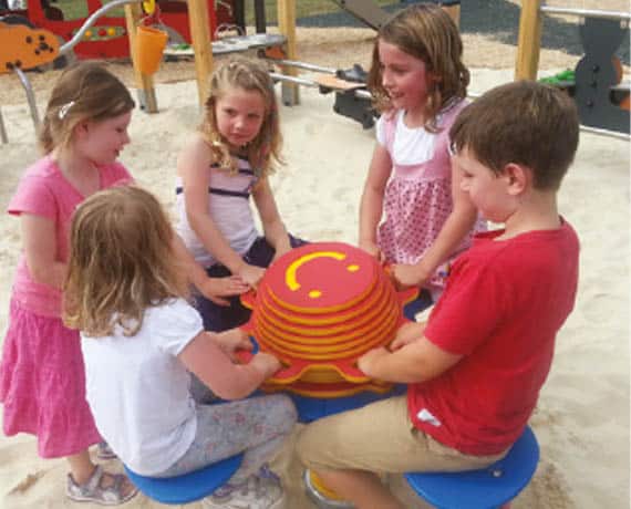 Avec ses quatre sièges, il permet aux enfants de se balancer ensemble tout en stimulant leur équilibre, grâce aux poignées de maintien et à un mouvement fluide et dynamique.