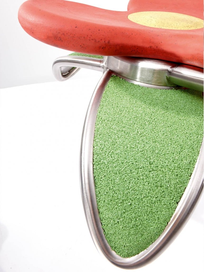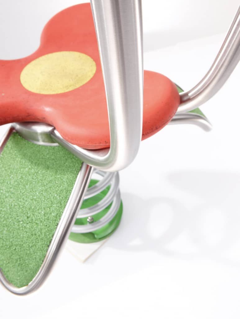 Le jeu est coloré, le siège fleuri, ce qui laisse court à une imagination. Les zones de contact sont en caoutchouc de haute qualité. Les éléments de raccordement sont en acier inoxydable durable.