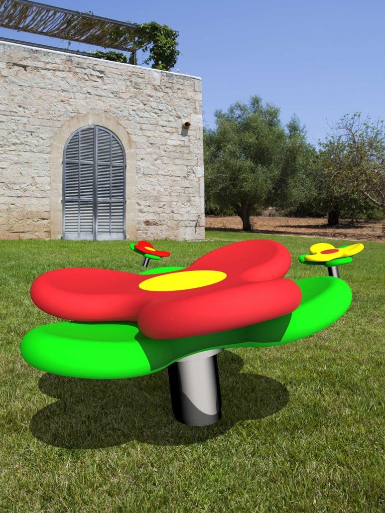 Le siège circulus 1 flower évoque les fleurs d’été. Le siège est en caoutchouc souple, les éléments de liaison sont en acier inoxydable de haute qualité.