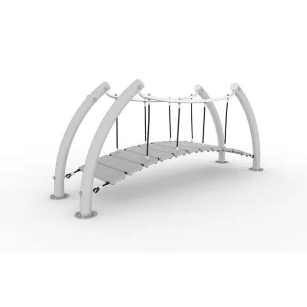 Rope Bridge a une hauteur de chute libre supérieure à 600 mm. Afin de se conformer à la norme EN 1176, veuillez prévoir un espace libre de 1,5 m autour du pont de corde afin qu'il n'y ait pas d'objets durs dans l'espace de chute. |