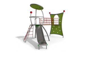 Les enfants de 6 ans et plus peuvent escalader et glisser avec la combinaison du jeu Ascendo 1 A robinier. La plateforme est à 1,70 mètres ce qui offre une vue fantastique sur la cour de récréation ou sur l’aire de jeux.