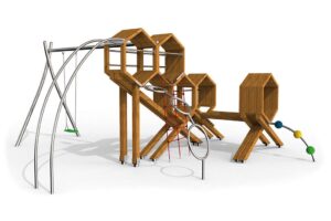 Ascendo 1 B robinir offre encore plus d’options pour permettre aux enfants de jouer. Cet équipement impressionnant dispose non seulement d’un toboggan et d’une échelle d’escalade, mais aussi d’une tour et d’une balançoire. Stilum propose un jeu diversifié sans perdre de vue le caractère unique de son design.