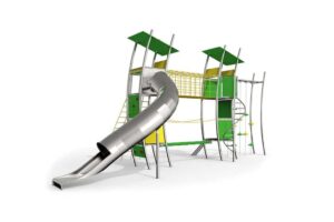 Très impressionnant et de grand volume, le grand parc de jeux Ascendo 2 robinier impressionne sur tous les terrains de jeux et offre aux enfants à partir de 6 ans beaucoup de plaisir. La tour avec le toboggan, et l’échelle d’escalade est reliée avec un pont suspendu sur la deuxième tour qui comprend les 2 barres glissantes, le mur d’escalade et l’escalier d’escalade en forme de demi-cercle.