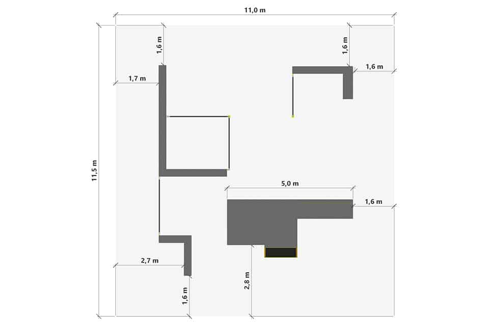 Zone de sécurité : 11,5 x 11 (126,5 m2)