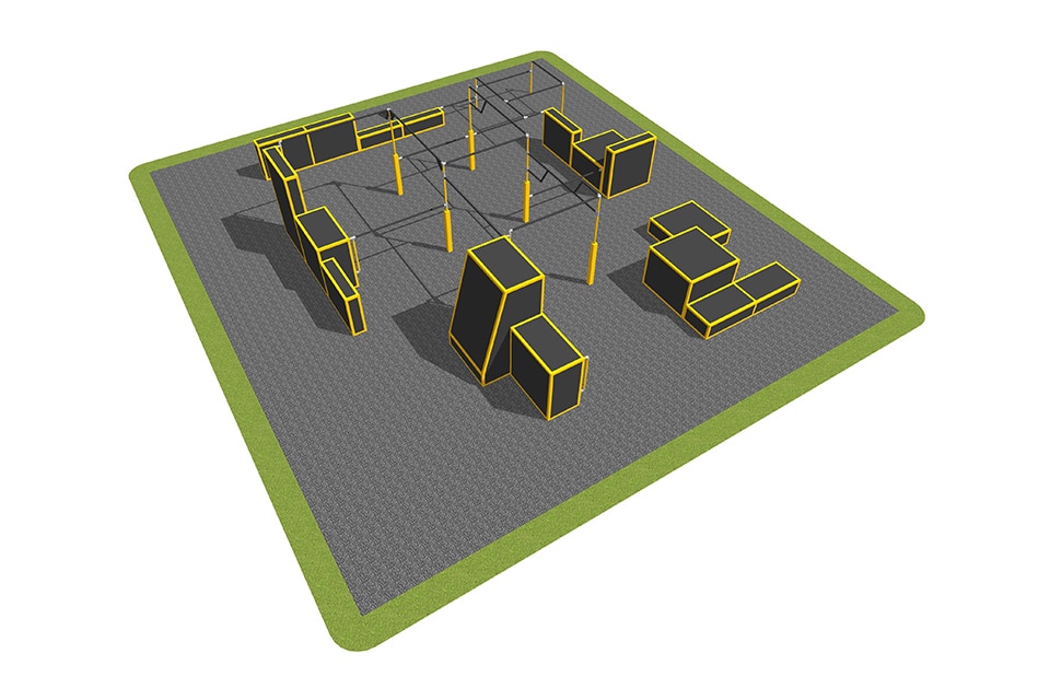 Simple L est un ensemble spacieux proposant une large gamme d’éléments de parkour, permettant la pratique de diverses techniques, des plus simples aux plus exigeantes. Occupant une superficie de 168,8 m², il est idéal pour les groupes de taille moyenne et l’organisation de séances d’entraînement.