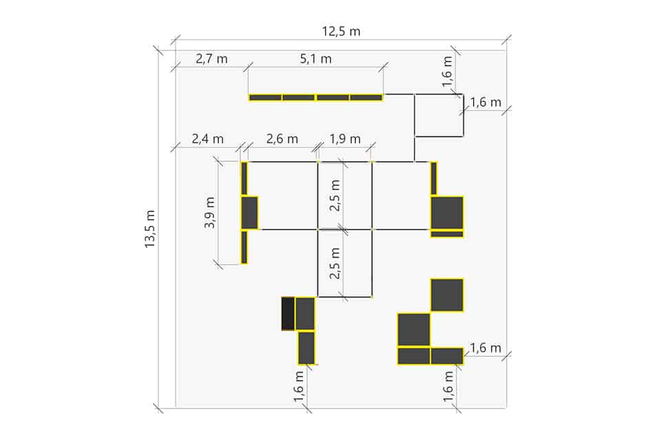 Zone de sécurité : 12,5 x 13,5 m (168,8 m2)