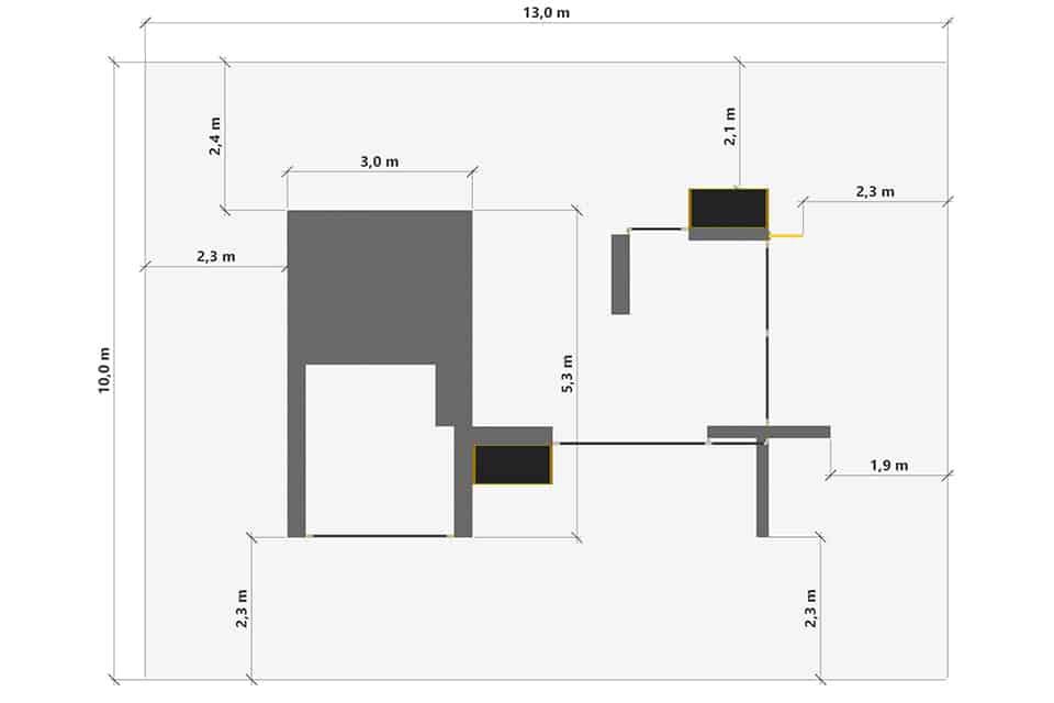 Zone de sécurité : 10 x 13 (130 m2)