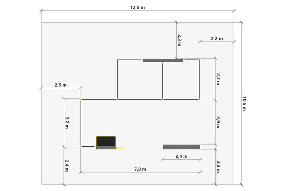 Zone de sécurité : 12,5 x 10,5 (131,3 m2)
