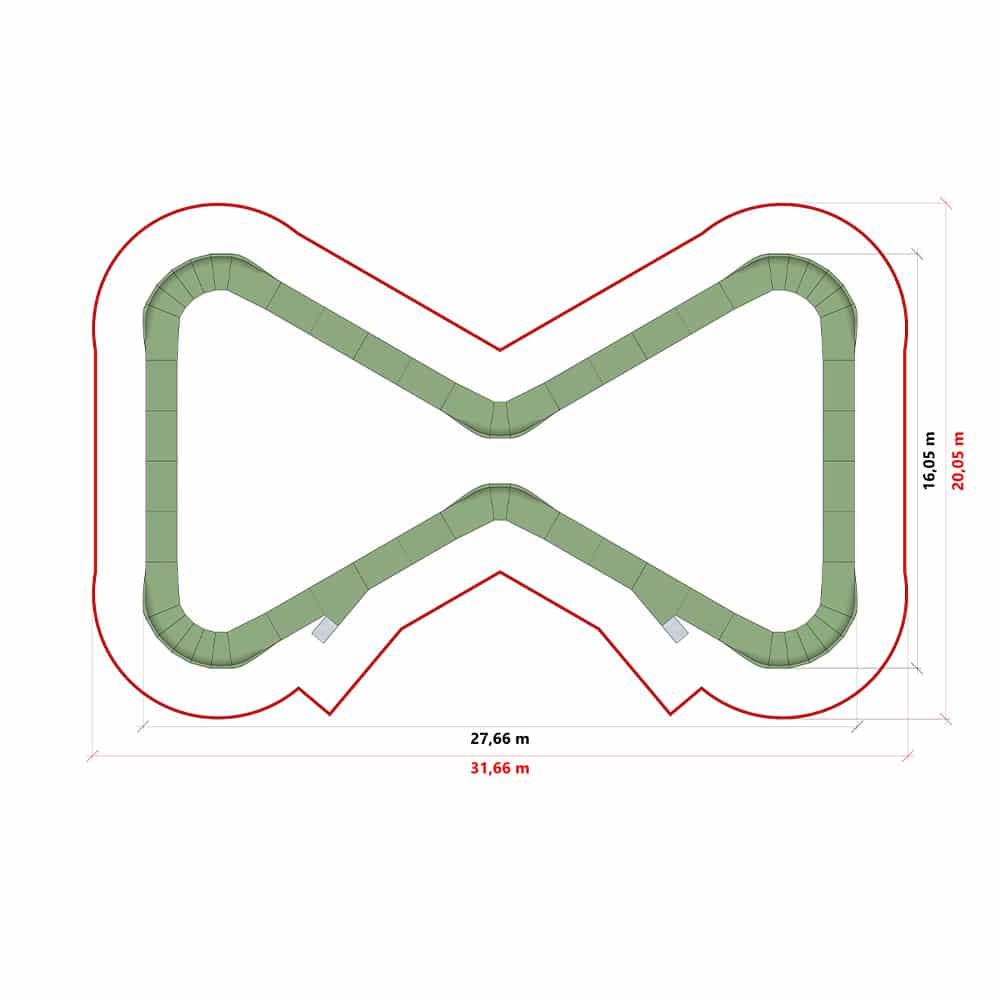 – Largeur augmentée de 20 % par rapport aux pumptracks modulaires classiques, pour plus de confort, de sécurité et de liberté de mouvement.
