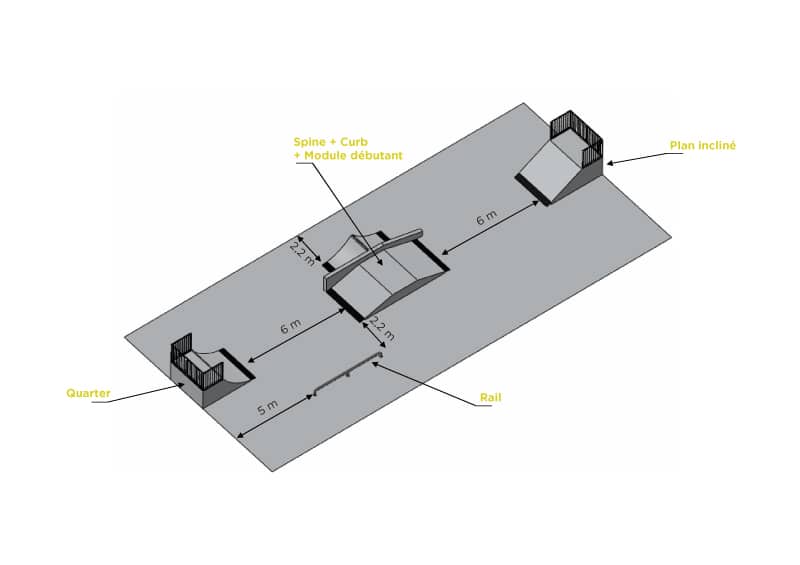 Skatepark 10 est un skatepark modulaire associant différentes typologies de modules. Il s’intègre facilement dans tout aménagement urbain dédié à la glisse. Fabriqué en Acier galvanisé, inox, aluminium, conforme à Norme NF EN 14974 – 14974/IN95.