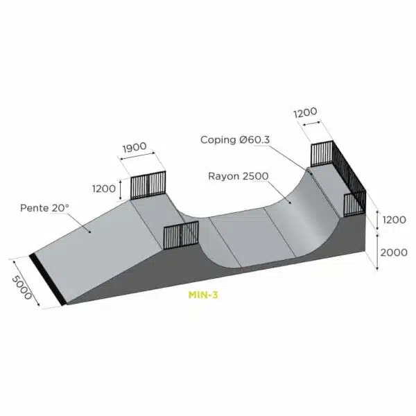 La Mini-rampe 3 s’adresse aux riders en quête de fluidité et de progression technique. Conception durable en acier galvanisé, inox et aluminium. Conforme NF EN 14974 / IN25.