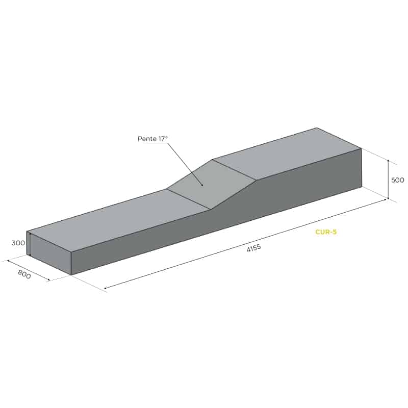 Ce module compact et robuste permet un apprentissage progressif des slides. Le Muret curb 5 est l’élément idéal pour les riders souhaitant varier les approches, en toute sécurité. Normé NF EN 14974 / IN31.