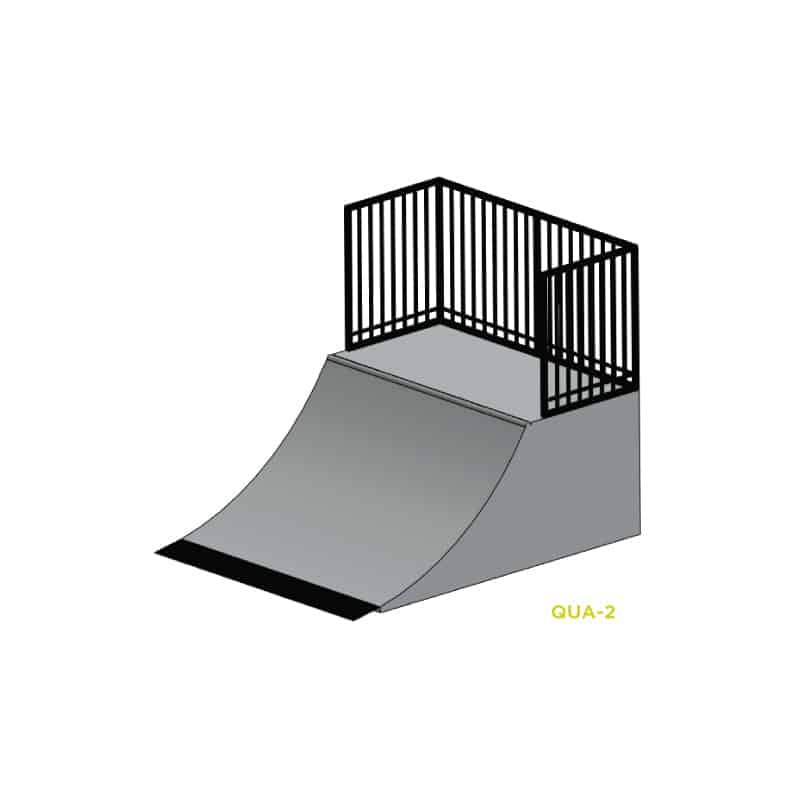 Avec une courbe intermédiaire, ce quarter-pipe convient aux riders de niveau moyen à avancé. Il permet des retours fluides et une bonne prise d’élan. Norme NF EN 14974 / IN62.