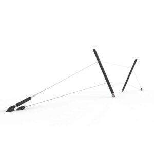 Rope Bridge a une hauteur de chute libre supérieure à 600 mm. Afin de se conformer à la norme EN 1176, veuillez prévoir un espace libre de 1,5 m autour du pont de corde afin qu'il n'y ait pas d'objets durs dans l'espace de chute. |