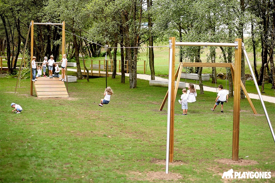Spécialiste du jeu actif et du design ludique, Playgones vous accompagne dans la conception et la fourniture de votre tyrolienne pour aire de jeux. Nos équipements sont conçus pour une installation rapide, une sécurité optimale et une intégration paysagère soignée.