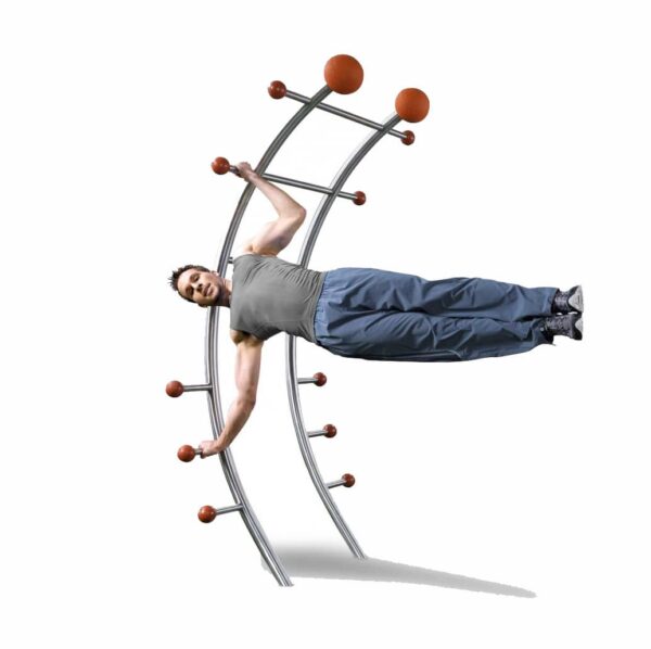 Tout comme son grand frère, cet élégant équipement outdoor permet de nombreuses possibilités d’entraînement tels que push-ups, pull-ups et exercices d’étirement.