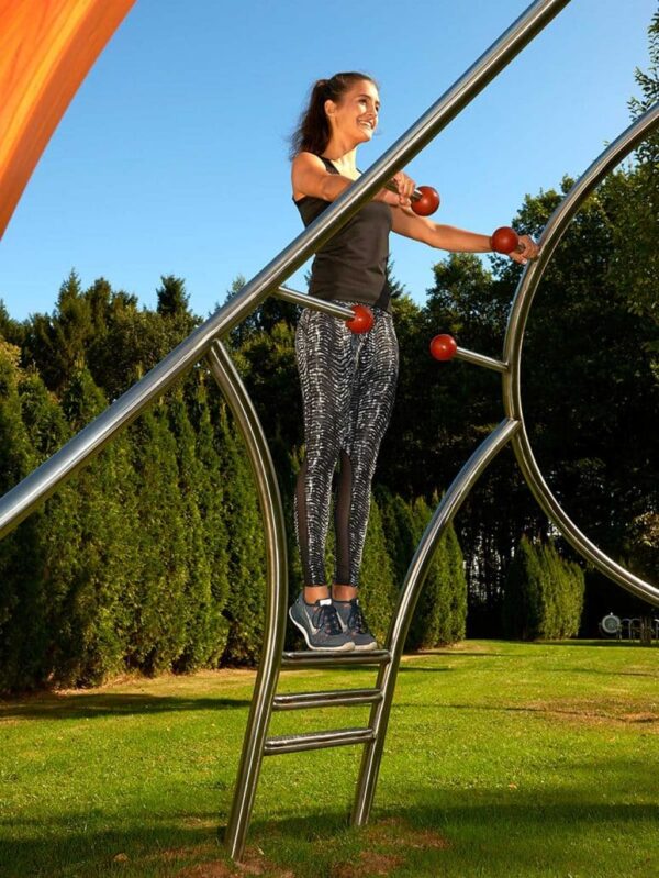 Cet équipement de fitness convainc par des matériaux de qualité supérieure comme l’acier inoxydable, bois lamellé collé et caoutchouc.