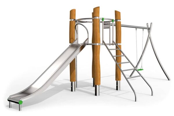 Ascendo 1 B robinir offre encore plus d’options pour permettre aux enfants de jouer. Cet équipement impressionnant dispose non seulement d’un toboggan et d’une échelle d’escalade, mais aussi d’une tour et d’une balançoire. Stilum propose un jeu diversifié sans perdre de vue le caractère unique de son design.