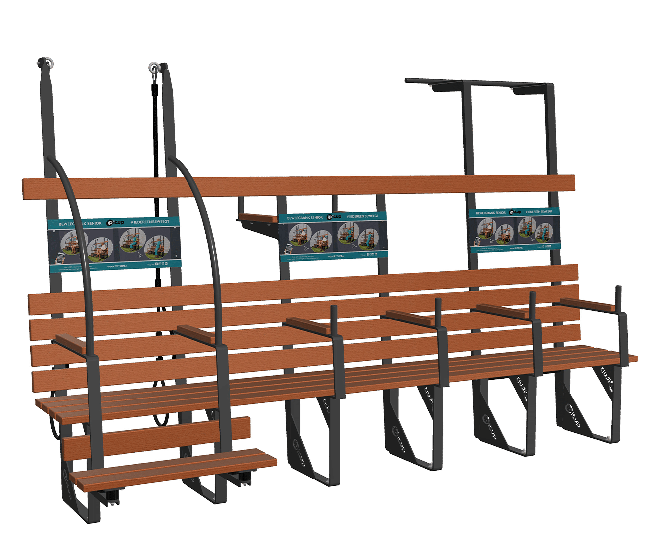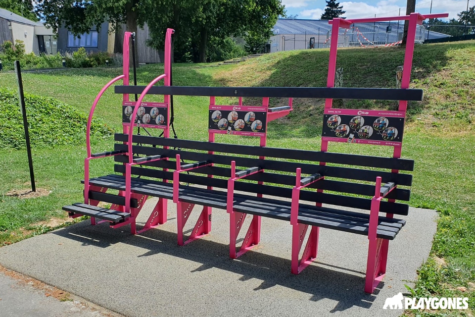 Retrouver sur chaque banc un panneau d’informations intégré affichant les images différents exercices de base, accessibles à tous .