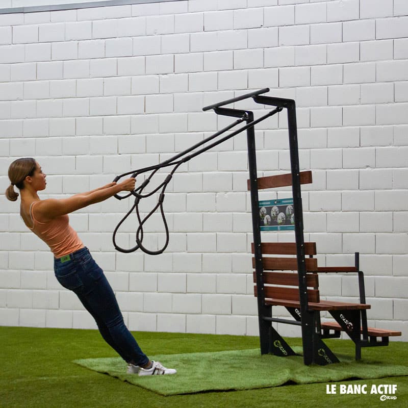 Retrouver sur chaque banc un panneau d’informations intégré affichant les images différents exercices de base, accessibles à tous .