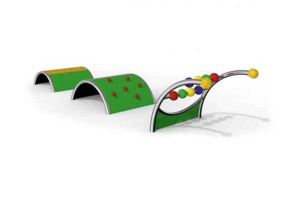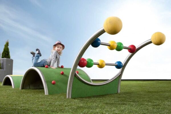 L’élément trois pièces pour tout-petits invite les enfants à grimper, glisser, se cacher et explorer. Les billes mobiles dans la zone avant montrent les couleurs primaires rouge, vert, bleu et jaune. Différents matériaux, tels que le dos antidérapant et le moelleux de la chenille, les surfaces froides en acier inoxydable ou les balles lisses aident les enfants à entraîner leurs sens tactiles tout en saisissant et en expérimentant. L’élément grimpant de stilum est disponible avec des profondeurs de montage de 150 (ID150) et 450mm (ID450).