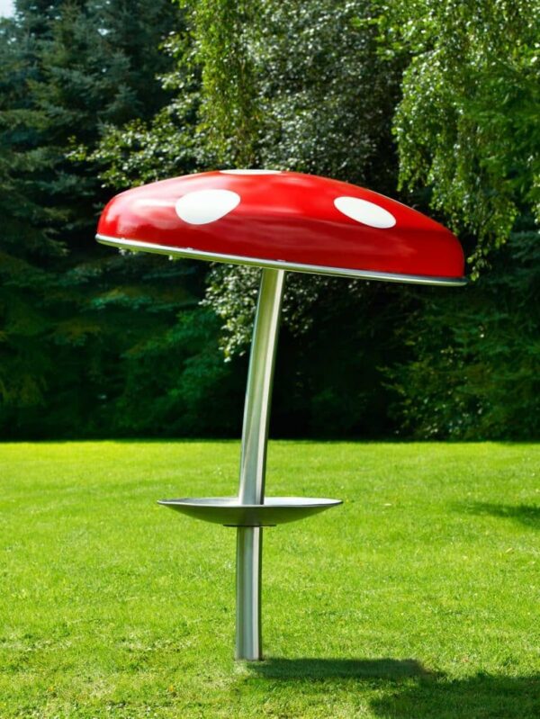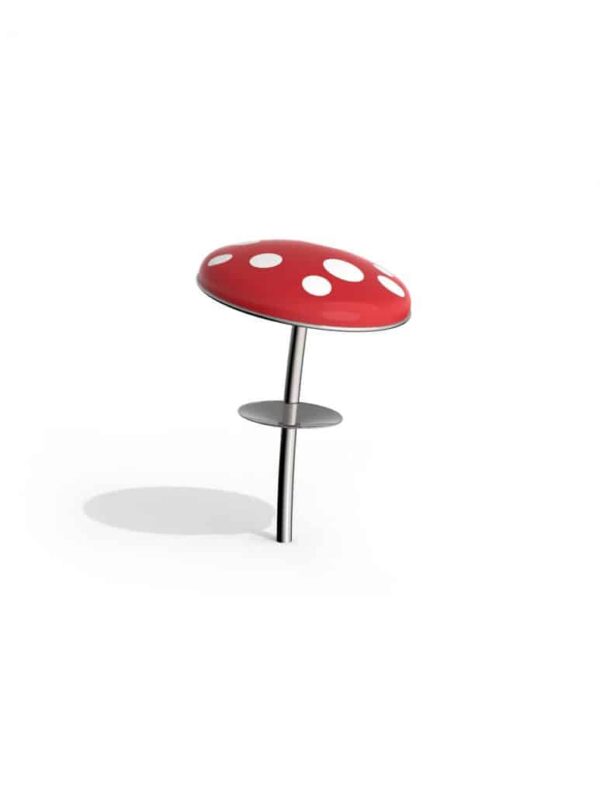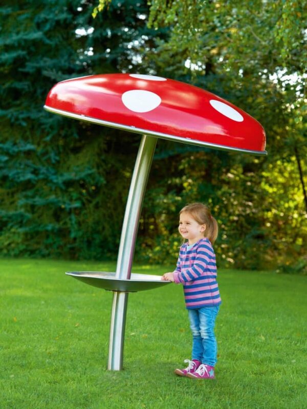 Le nouveau toit en forme de champignons est à la fois une protection solaire et un élément de jeu. Il s’intègre parfaitement dans le langage formel des jouets pour tout-petits et s’anime pour jouer et explorer le monde extérieur. Entièrement en acier inoxydable.