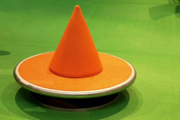 Un jeu qui a la forme d’un chapeau de magicien. L’espace d’accueil est constitué de granulés de caoutchouc EPDM antidérapants et assure ainsi un équipement sécurisé sur les aires de jeux et les parcs.