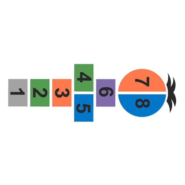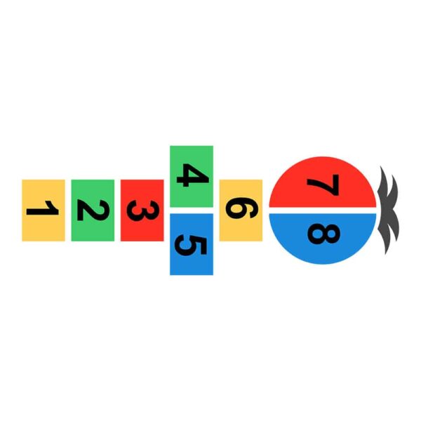 Une marelle silhouette d’enfant pour aider les petits à se projeter dans le mouvement et l’imitation.