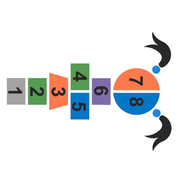 Une marelle tendre et colorée avec une figure enfantine pour susciter l’identification et l’élan.